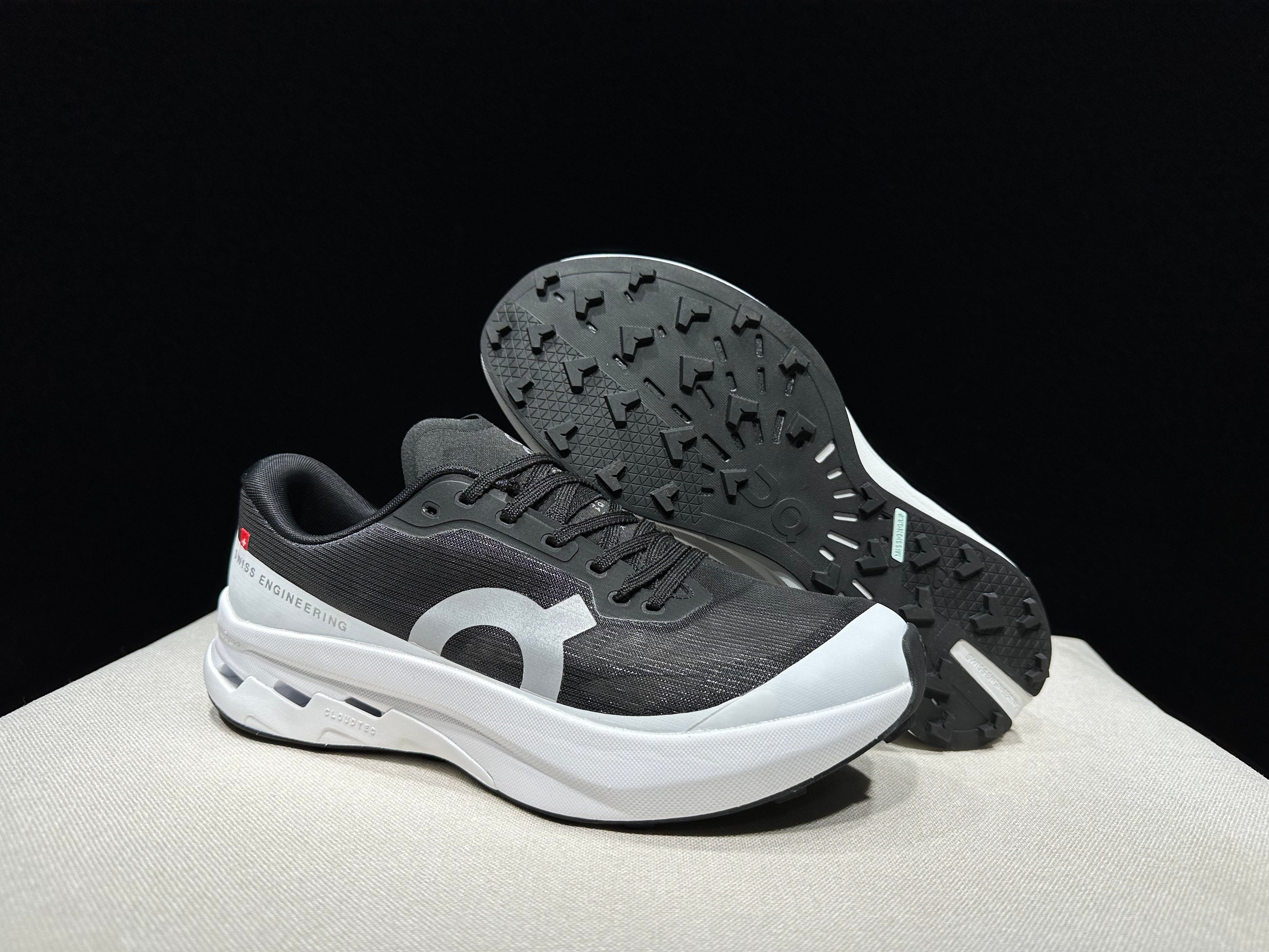 • Altura da entressola (stack) e geometria: Altura elevada no calcanhar (~ 38,5 mm) em versões “Pro”, com rocker para transição eficiente. Road Trail Run