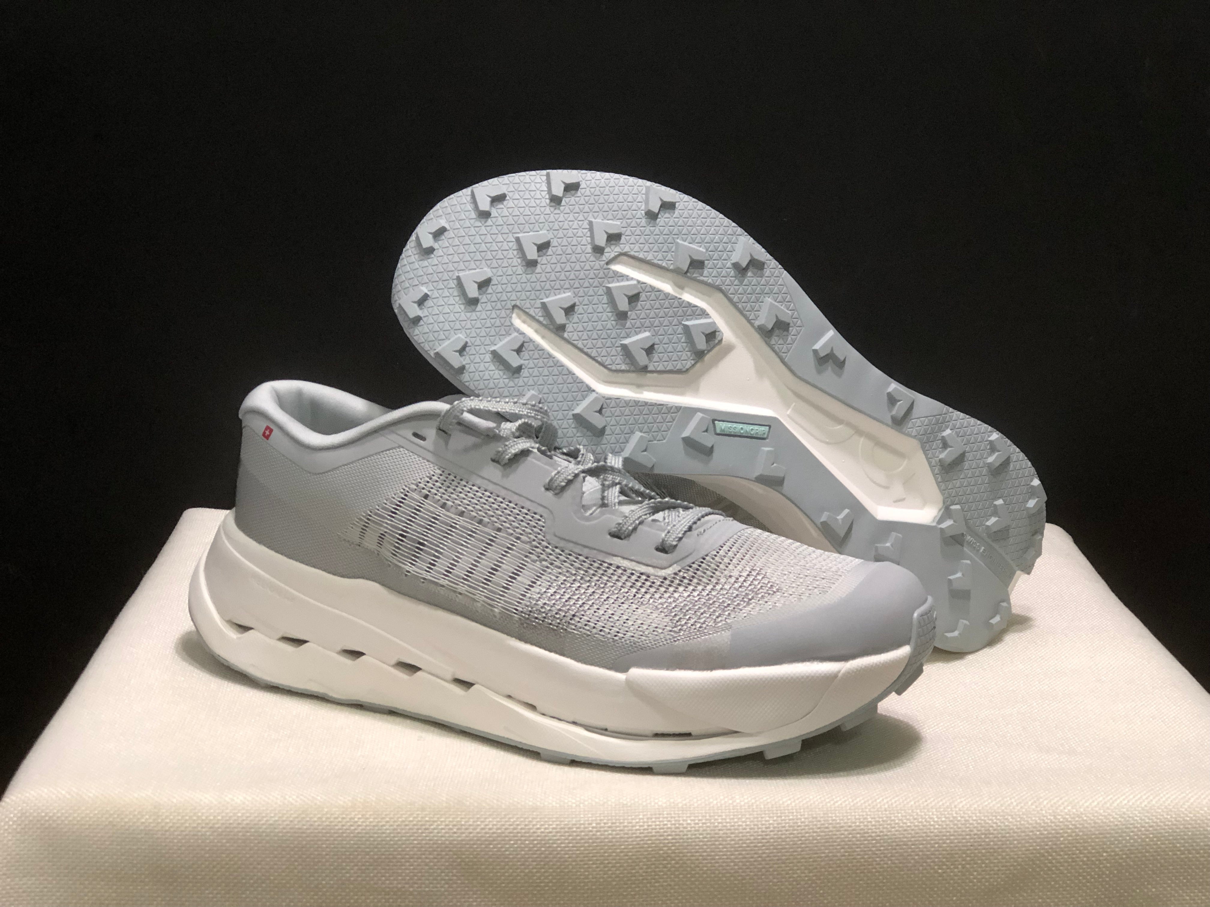 • Solado: composto da tecnologia Missiongrip™, com cravos (lugs) de ~3–3.5 mm de altura, geometria otimizada via análise de elemento-finito (FEA). iRunFar+1
